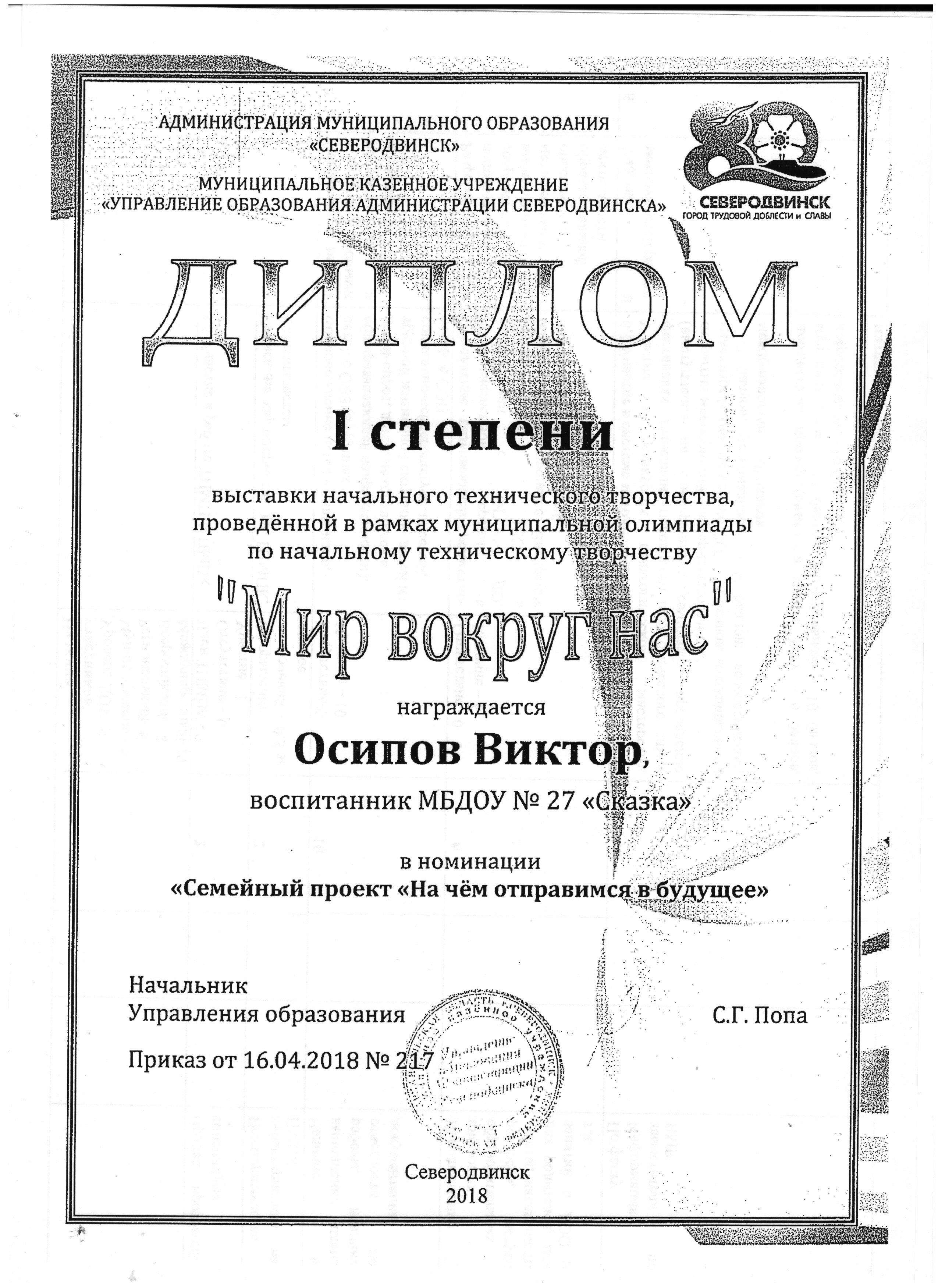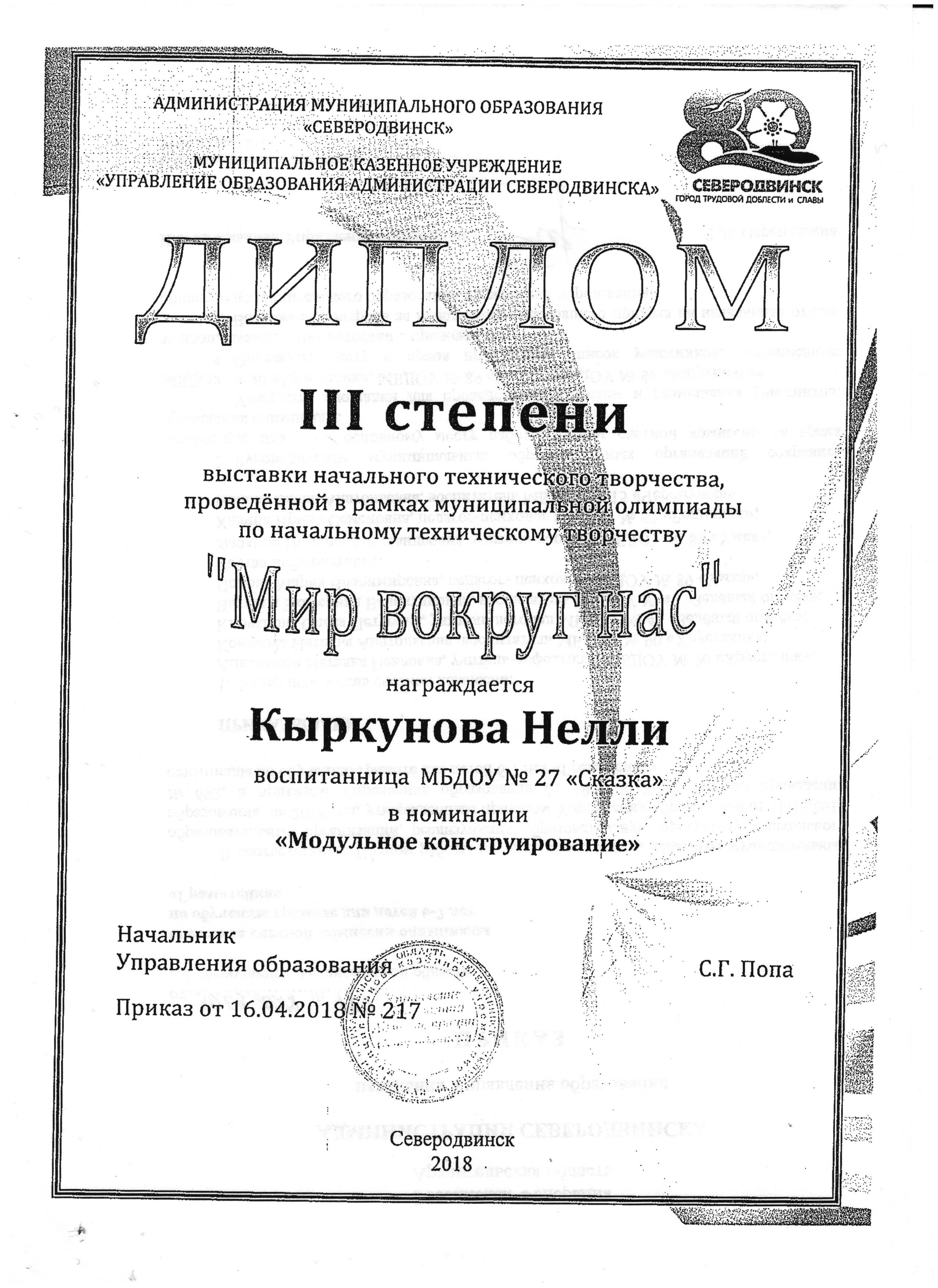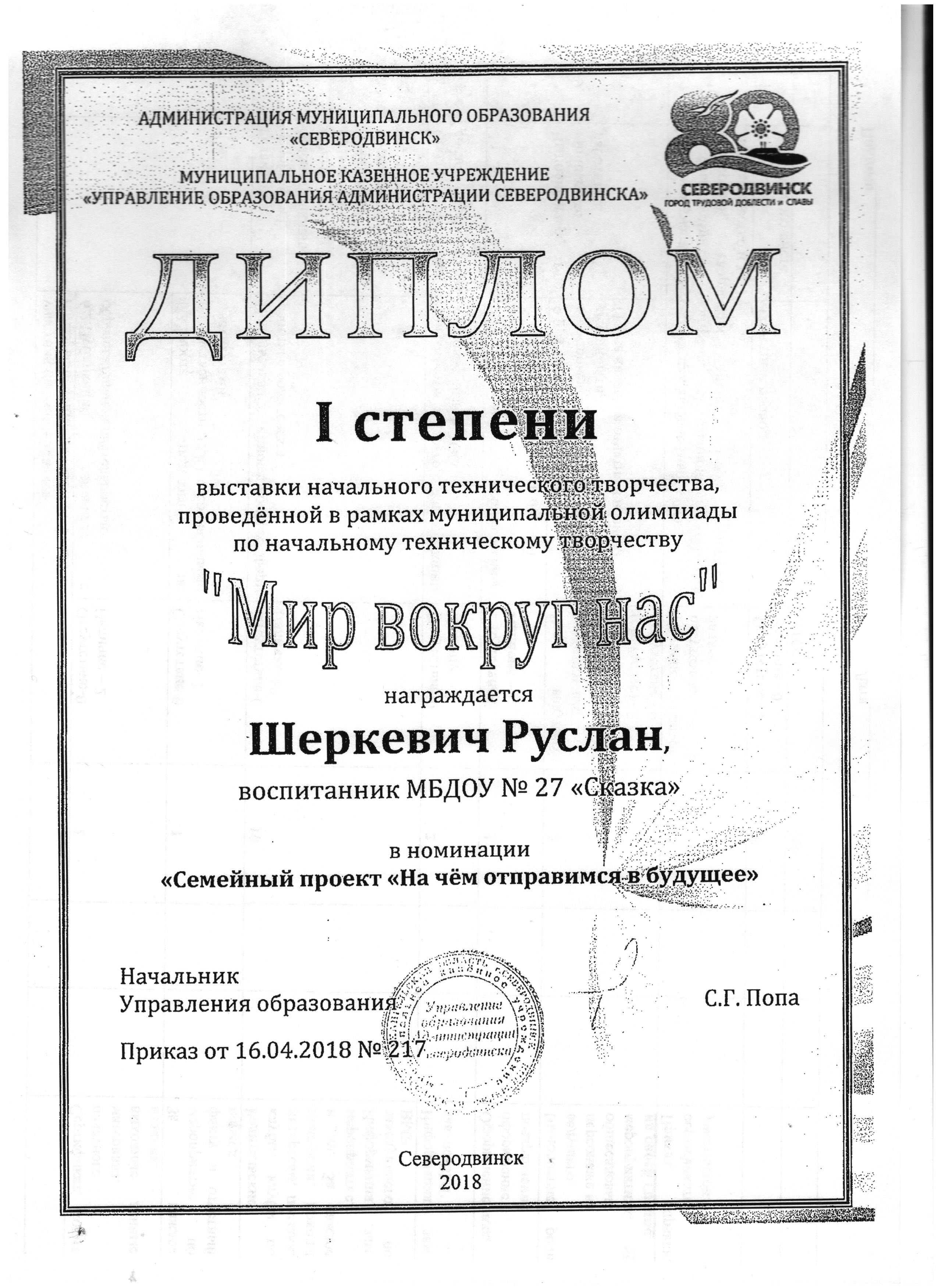 Апрель 2018г. Воспитанники МБДОУ № 27 “Сказка”стали победителями в выставке начального технического творчества, проведенной в рамках муниципальной олимпиады по начальному техническому творчеству “Мир вокруг нас”