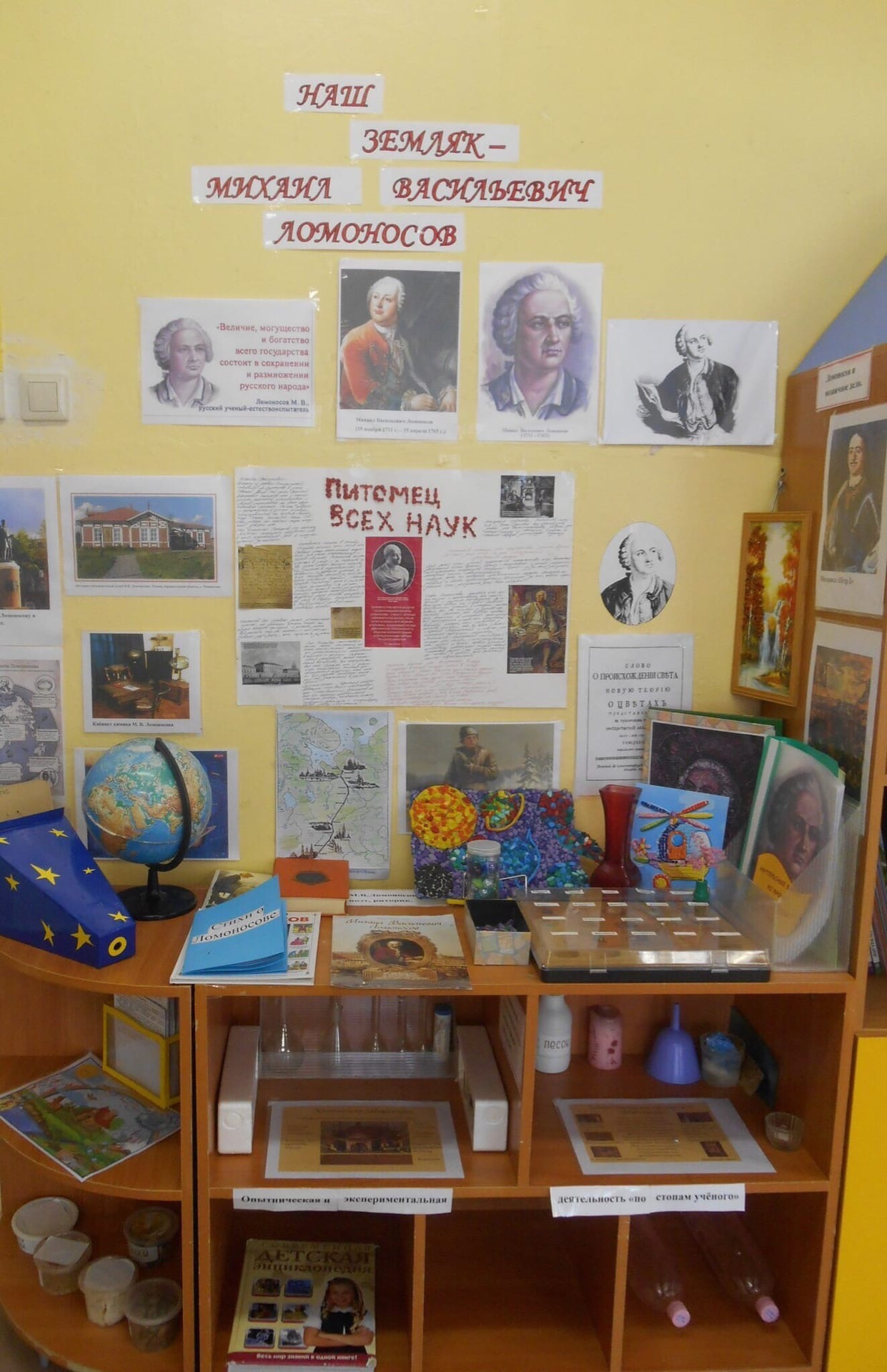 18 и 19 ноября в МБДОУ №27 “Сказка” в группах старшего дошкольного возраста прошли занятия, посвященные великому ученому. Дети знакомились с историей его жизни, его открытиями и достижениями, была проведена экскурсия к памятнику на площади М.В.Ломоносова. В одной из групп детского сада организован мини-музей, посвященный М.В. Ломоносову.
